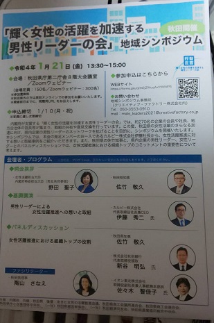 1月21日、秋田県庁で開催されました。私は・・・横手市の県南男女共同参画センターでオンライン視聴をしました。自宅も含めて290人が参加したそうです。