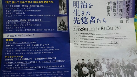 この展示は8月3日までやってます。関連イベントとして、6月18日秋田市と潟上市の探訪ツアー、7月9日に横手市と湯沢市の探訪ツアーが企画され、6月11日は雄物川コミュニティセンターで講演会があるそうです。皆さん、ぜひおざってたんしぇ。