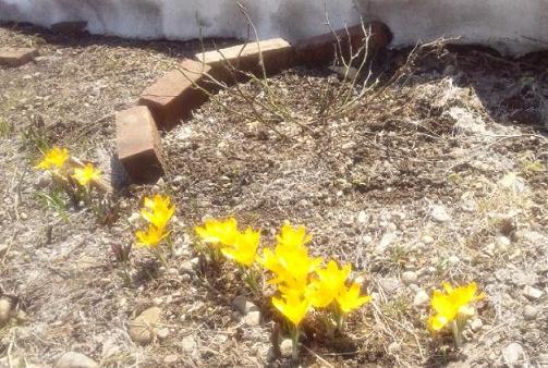 まだまだ解けない庭の雪。その間からクロッカスが写真のようにあざやかに咲きました!